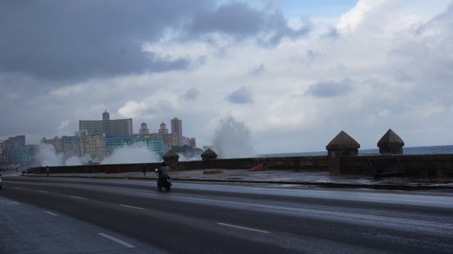 Wir sind wieder zurück in Havanna und wechseln von Mietauto auf Bus. Wir erleben stürmisches Wetter in Havanna und beobachten stundenlang fasziniert, wie die Fahrbahn am Malecon immer wieder von Meerwasser überschwemmt wird.