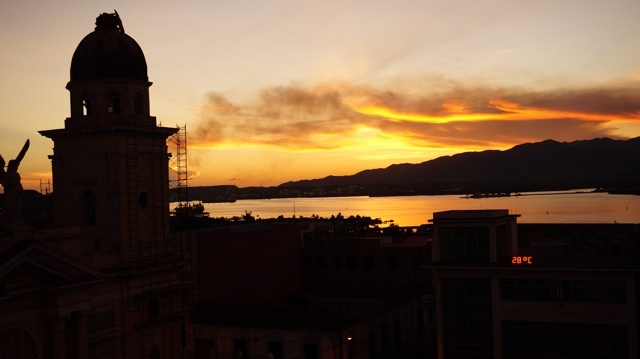 Wir fahren mit dem Nachtbus 15 Stunden von Havanna bis nach Santiago de Cuba. Der Bus ist bis auf den letzten Sitz ausgebucht und nicht gerade geräumig. Die Klimaanlage bläst unbarmherzig auf uns herab, aber wir sind vorbereitet und können zum ersten Mal wieder lange Hosen und dicke Fleecejacken tragen. Nicht ganz frisch steigen wir am Morgen in Santiago aus. Santiago ist die zweitgrösste Stadt Kubas und wurde 2012 vom Hurrikan Sandy ziemlich verwüstet. Historisch ist die Stadt wichtig, weil sich hier 1898 die Amerikaner in den Unabhängigkeitskrieg gegen die Spanier einmischten und sie besiegten. Die. Kubaner wurden damit zwar unabhängig von den Spaniern, ihnen wurde aber ein Vertrag aufgezwungen, der sie politisch und ökonomisch von den Amerikanern abhängig machte. Außerdem befindet sich in Santiago die Moncada-Kaserne, auf die Fidel Castro am 26. Juli 1953 einen Angriff startete. Der Angriff mißlang zwar, das Datum gilt aber als Beginn der Revolution.