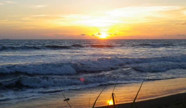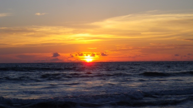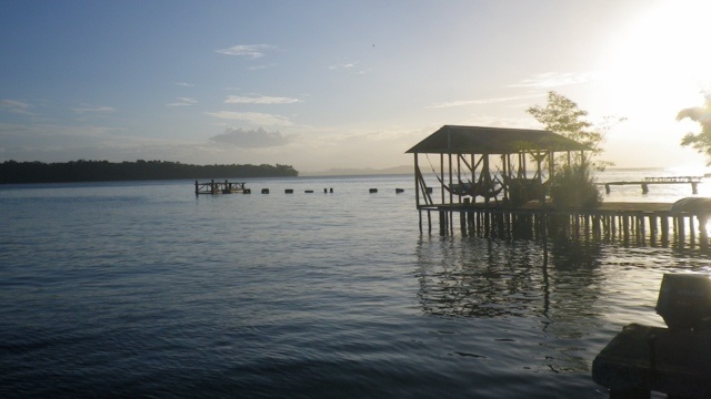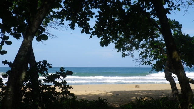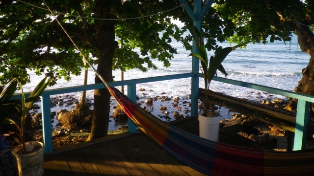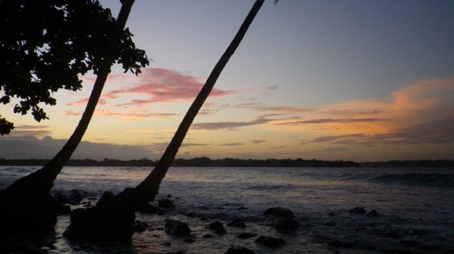 Mit Bus und Taxi komme ich an den 20 km langen Pazifikstrand Playa las Lajas. Dort hatten sich Robert und ich als Volontäre in einem Ökohostel beworben, sind aber leider nicht genommen worden, weil wir nur eine Woche bleiben wollten. Ich wollte mir das Hostel trotzdem einmal anschauen. Als ich ankomme, hat es allerdings geschlossen und bleibt es auch für den Rest des Tages. Ich komme bei DJ in seinen schäbigen Cabanas unter und lerne dort Nina aus St. Gallen kennen. Nina hat im Ökohostel gearbeitet, bis sie am Vortag von der streng veganen Besitzerin vor die Tür gesetzt worden ist, weil sie Küken aus der Stadt mitgebracht hatte. Wegen Nina ist das Hostel jetzt auch geschlossen- die Besitzerin Elisa brauchte einen freien Tag, um ihre Empörung zu verarbeiten. Ich entscheide mich daher gegen meinen doch wieder vakanten Job und lasse mich von Nina am nächsten Tag einmal quer durch Panama auf die karibische Inselgruppe Bocas del Toro schicken. Davor erleben wir aber noch einen wunderschönen Sonnenuntergang und ein Lagerfeuer am Strand.