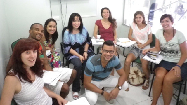 Die Sprachschule ist in Copacabana und bietet die praktische Möglichkeit, nach dem Unterricht gleich an den Strand zu gehen. Mein Lehrer Pedro ist ein wunderbarer Lehrer, der neue Vokabeln für jeden von uns in die jeweilige Sprache übersetzen kann. Wir sind 7 Leute aus 7 verschiedenen Ländern im Kurs.