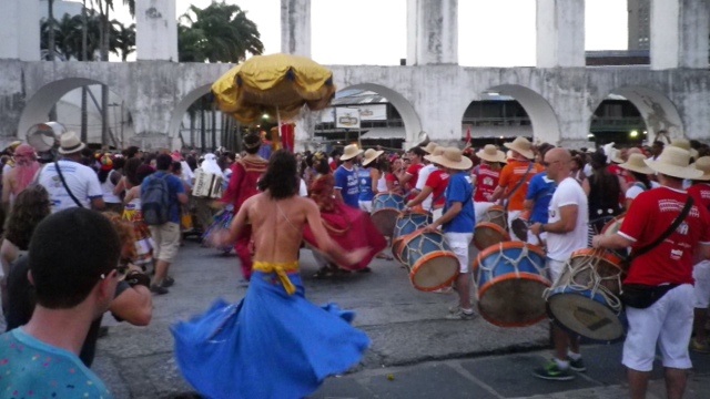 Für die Brasilianer beginnt mit dem Jahreswechsel der Präkarneval, was dazu führt, dass jede Sambaschule öffentliche Proben in ihren Räumen veranstaltet und im Sambodromo jedes Wochenende offene Proben stattfinden. Auch der Strassenkarneval muss mit vielen Strassenfesten und -umzuegen geprobt werden. Und natürlich wird überall Samba gespielt und getanzt. Als ich einmal mit einem Brasilianer an der Busstation warte, borgt er sich von einer mit uns wartenden Frau eine Gitarre aus und beginnt Samba zu spielen. Sofort mischen sich die anderen Wartenden ein und singen oder machen Percussion dazu. Ich staune und bin diesmal froh, dass der Bus auf sich warten läßt.