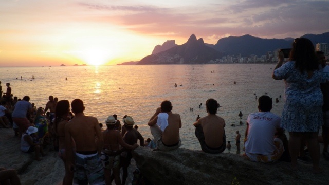 Am ersten Wochenende erlebe ich den ersten Sonnenuntergang am Strand von Ipamema. Als mir eine deutsche Touristin im Haus davon erzählt hat, wollte ich zuerst nicht glauben, dass das möglich ist, da ich doch jeden Tag von meinem Zimmer aus den Sonnenaufgang sehe und wir ja an der Ostküste Südamerikas sind. Aber ich konnte mich davon überzeugen, dass die Sonne tatsächlich in Ipanema im Meer untergeht. Am Wochenende ist der Strand voll mit Leuten und wenn die Sonne das Meer berührt, klatschen alle.