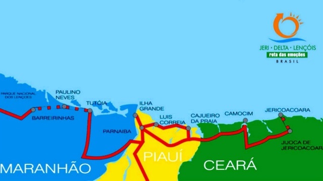 Die „Rota das Emoções“ verbindet die touristischen Highlights der Küste im Nordosten Brasiliens – die Lençóis Maranhenses, das Parnaiba-Flussdelta und den Strand von Jericoacoara, allesamt aufregende Orte. Doch auch der Weg zwischen den Stationen ist ein Abenteuer, das viele Gefühle freisetzt. Mal auf Buckelpisten, mal quer durch die Dünen, selten sind wir auf richtigen Straßen unterwegs.