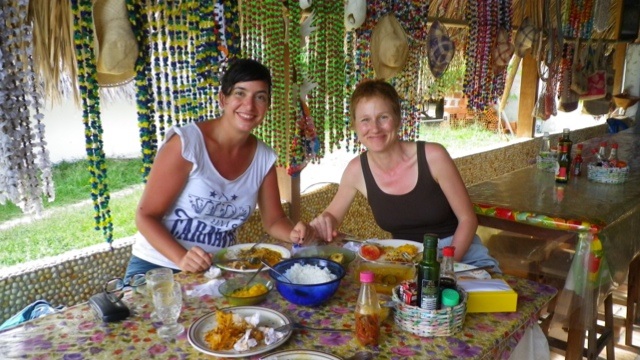 In Atins hätten wir es noch ein paar Tage ausgehalten; da aber der Weitertransport in Richtung Südosten sehr kompliziert und kostspielig ist, hängen wir uns an Camille und Senap. Am nächsten Morgen bringen uns Maduro und sein Freund mit dem Boot zurück nach Caburé. Von hier gibt es keinen regulären Weitertransport- Fahrer von Allradautos schauen manchmal auf der Suche nach Kunden vorbei. Unsere Verhandlungsposition so mitten in der Wüste ist schlecht- dank Camilles gutem Portugiesisch und Senaps Bazartaktik finden wir aber einen Fahrer, der uns zu einem guten Preis nach Parnaiba bringt.