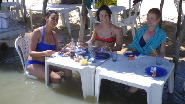 Von Atins hat man Zugang zum Nationalpark und wir beschliessen, ohne Guide eine kleine Wanderung zu unternehmen. Am Strand treffen wir Maduro, der eigentlich nur zum Kiffen in die Wüste gehen wollte, aber uns nun gerne begleitet. Teils am Strand, teils durch die Dünen wanden wir nach Canto do Atins, ein Ort bestehend aus 2 Restaurants, deren Spezialität gebratene Shrimps sind. Nach dem herrlichen Essen spazieren wir durch die Dünen zurück und machen in jedem Wasserbecken eine Badepause.