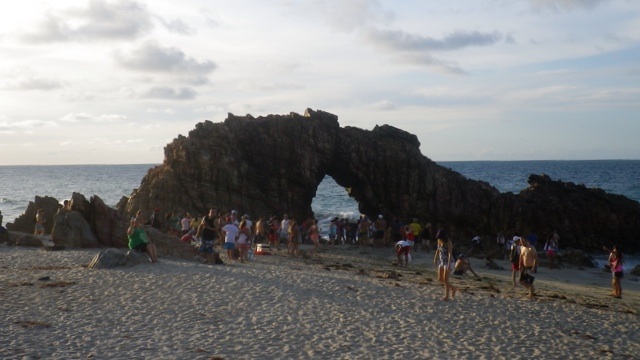 Jericoacoara ist paradiesisch. Ein Hippieort in den Dünen ohne befestigte Strassen und außerdem Kitesurfparadies. Nach langem Suchen finden wir die perfekte Unterkunft in der Pousada Ibiscus. Der Tagesablauf der Touristen verläuft hier synchronisiert: am späteren Nachmittag wandert man zum Pedra Furada und erlebt dort den Sonnenuntergang im Meer. Danach geht es zurück zum Strand von Jericoacoara, wo allabendlich Capoeira vollführt wird. Später schlürfen wir Caipis am Strand und ab Mitternacht wird bei Dona Amelia Forró getanzt. Wir tanzen barfuss im strömenden Regen- zum Glück hat es über 30 Grad. Im Morgengrauen folgen wir der letzten Tradition und schauen in der Bäckerei Santo Antonio zum Pão de Queijo essen vorbei, bevor wir dann endlich ins Bett fallen.